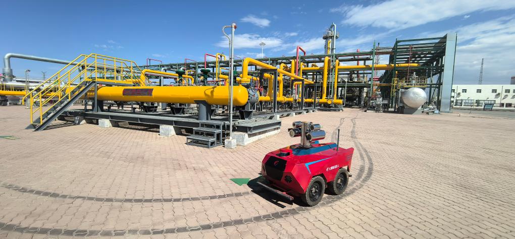 11月10日,温吉桑储气库群内,智能巡检机器人正在站内巡检 。(许倩倩 摄)