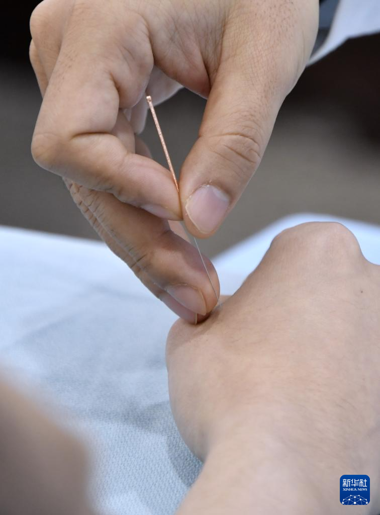 11月13日,同仁堂中医馆中医为患者进行针灸治疗。