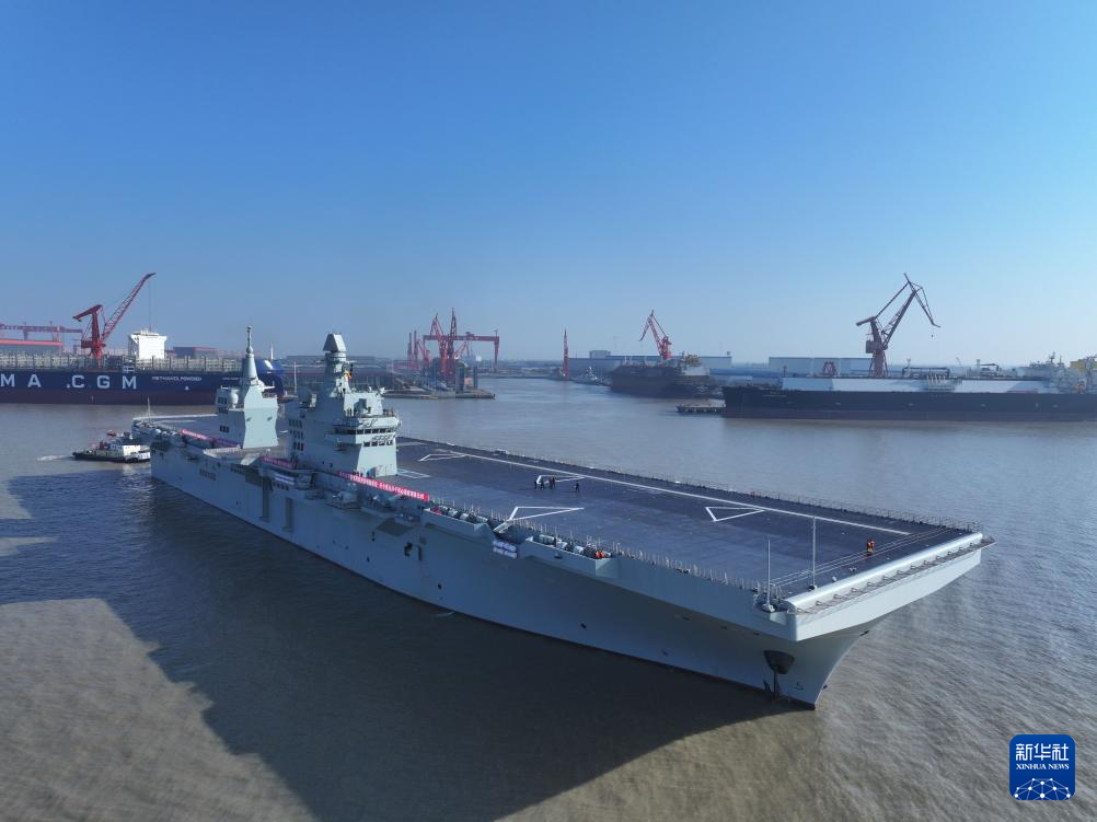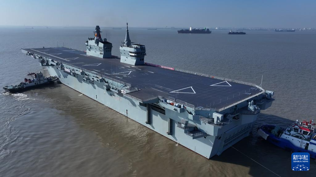 新华社上海11月14日电(张皓凝、张懋瑄)14日9时许,我国076两栖攻击舰首舰四川舰从上海沪东中华造船厂码头解缆启航,赴相关海域开展首次航行试验任务。