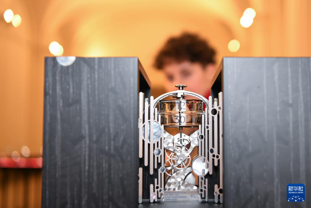这是11月13日在瑞士日内瓦拍摄的日内瓦高级钟表大赏展览上的创意钟表。新华社记者 连漪 摄