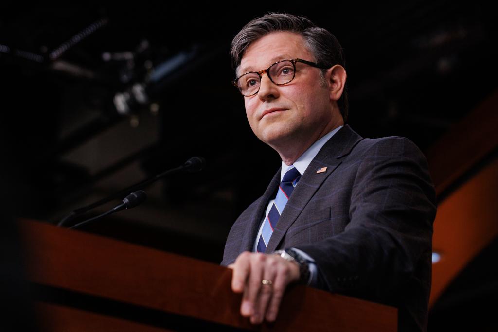 2024年2月6日,在美国华盛顿,美国国会众议院议长迈克·约翰逊举行记者会。新华社发(亚伦摄)