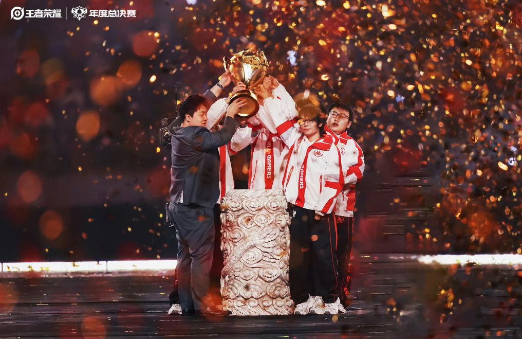 AG超玩会战队在2025年KPL年度总决赛上捧起冠军奖杯