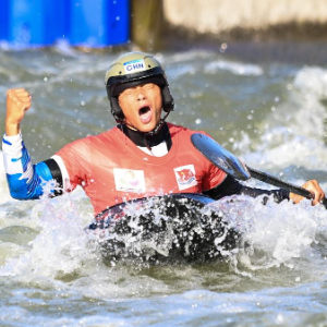 但全鑫利用顺水段加速,甩开了天津队选手刘天昌和山东体育学院队选手张家豪,在胡兆山只剩半圈就可以完成最后一个回旋时反超。场边一阵惊呼,冲过终点的全鑫没有做出在男子单人皮艇决赛中的“晚安”动作,而是举起双臂怒吼。