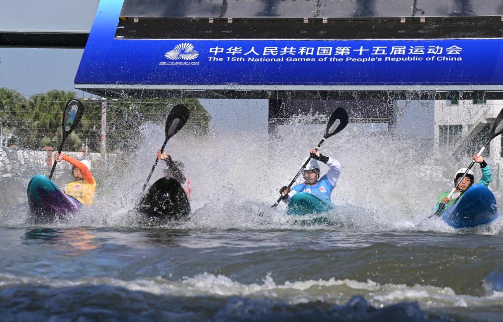 15日,十五运会皮划艇激流回旋男子极限皮艇决赛进行,全鑫一出发就落后于胡兆山,后者是他在男子单人皮艇决赛中的强力对手,在13日的那场决赛中,全鑫和胡兆山分别夺得金、银牌。
