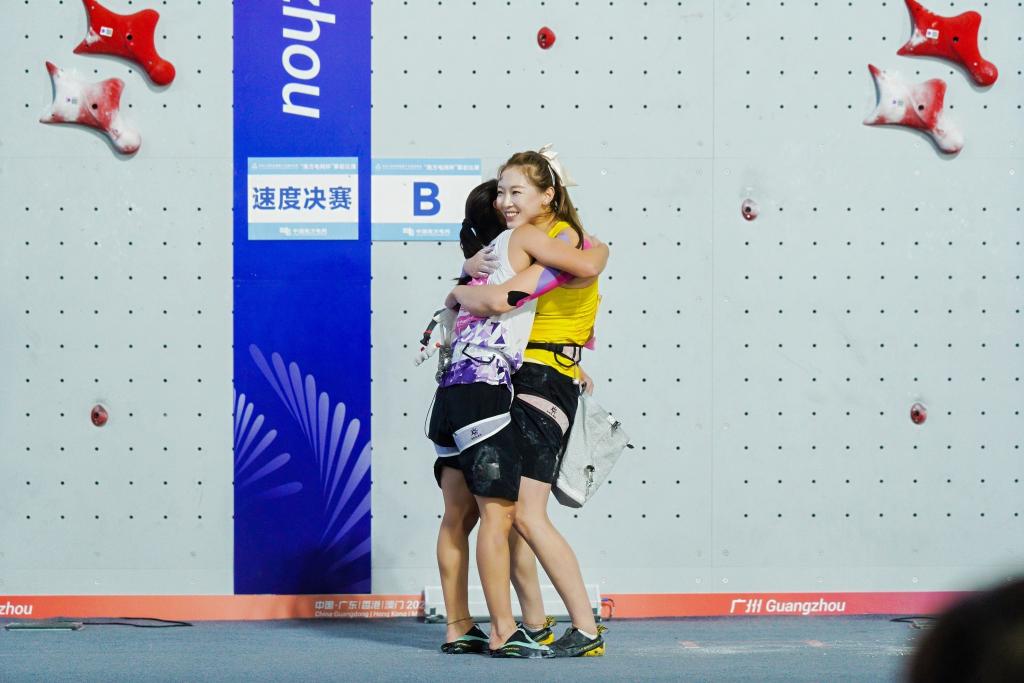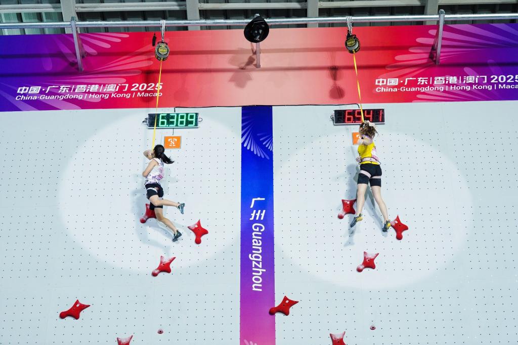 十六进八,牛笛对阵自己的国家队前队友汪生艳,两人几乎同时到顶,牛笛一侧的计时器显示:6秒62!获胜的同时,这一成绩将她个人最好成绩提升了近0.1秒。