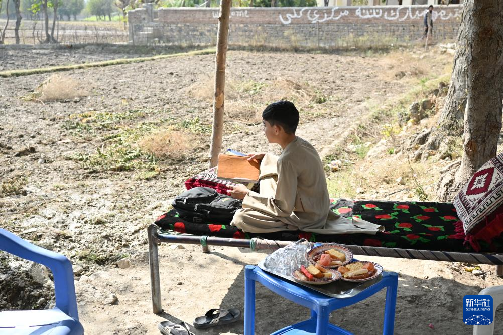 10月28日,在阿富汗东部霍斯特省阿里谢尔地区一个小村庄,比拉尔·沙菲克坐在床上读书。新华社记者 张艺缤 摄