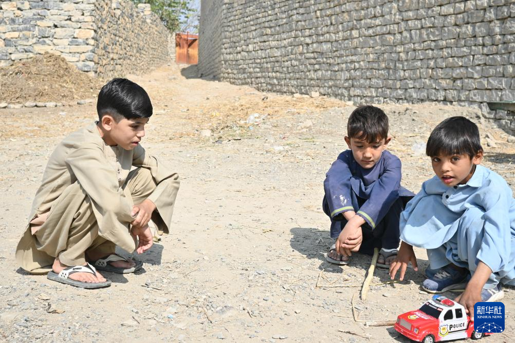 10月28日,在阿富汗东部霍斯特省阿里谢尔地区一个小村庄,比拉尔·沙菲克(左)跟小伙伴们在一起。新华社记者 张艺缤 摄