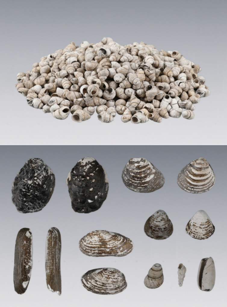 鲍家遗址内发现的水生软体动物遗存。(江苏省文物考古研究院供图)