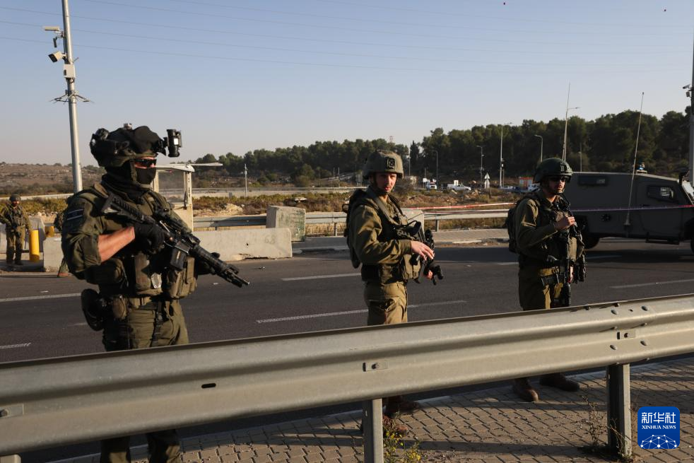 11月18日,在约旦河西岸古什埃齐翁路口,安全人员封锁袭击现场。新华社发(贾马尔·阿瓦德摄)
