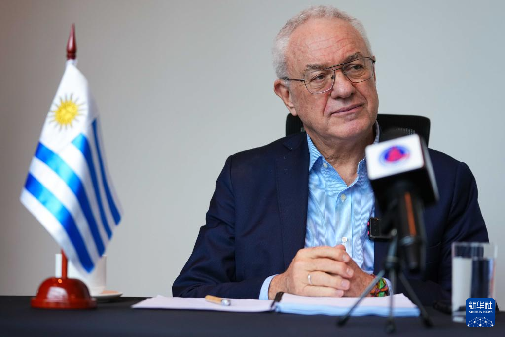 11月10日,乌拉圭外交部长马里奥·卢贝特金在哥伦比亚海滨城市圣玛尔塔出席第四届拉共体-欧盟峰会期间接受新华社记者专访。新华社发(安德烈斯·莫雷诺摄)