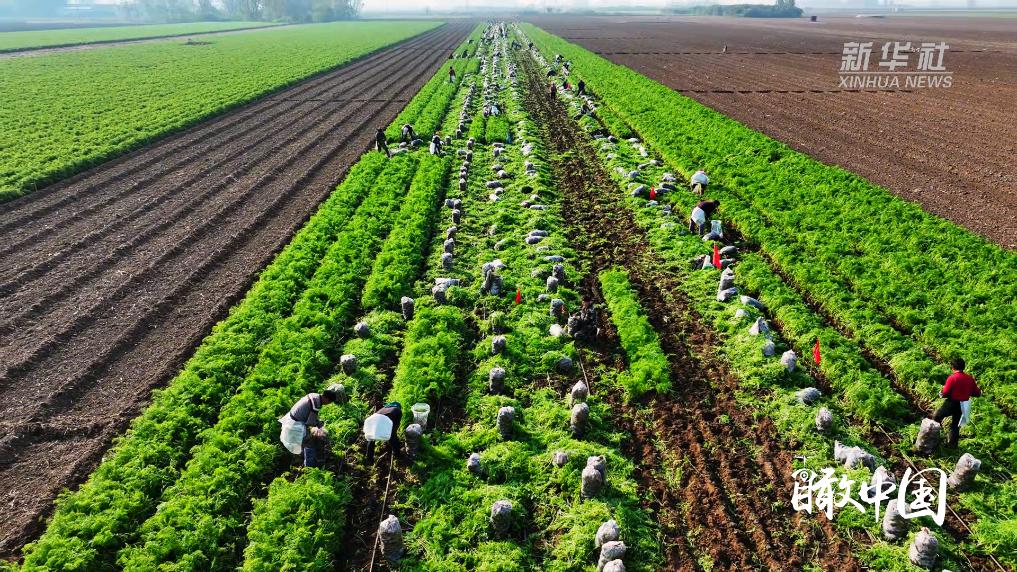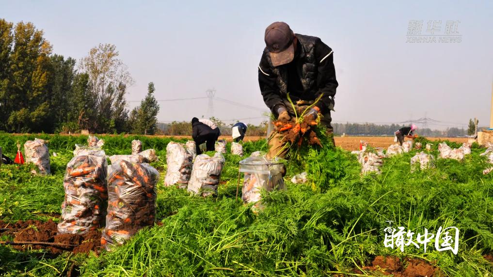 初冬时节,山东省广饶县的胡萝卜种植基地里,翠绿的胡萝卜缨随风起伏,宛如一片碧色海洋。工人们弯腰忙碌,动作娴熟地将一根根橙红饱满的胡萝卜从松软泥土中拔出,轻抖去土,整齐装袋。田间地头,满载的运输车往来穿梭,处处洋溢着丰收的喜悦。经过附近加工厂的清洗、挑选、装箱后,这些承载着农民喜悦的“金胡萝卜”,将漂洋过海,直达海外消费者的“国际餐桌”。