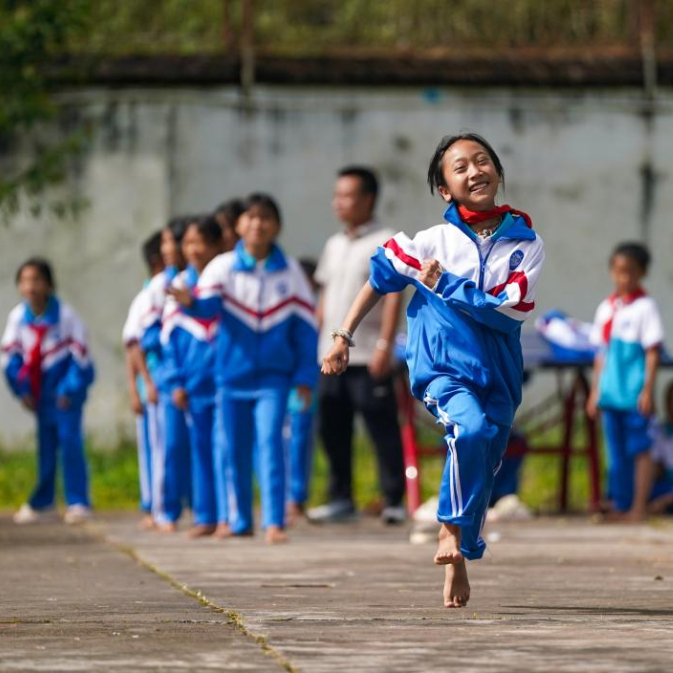 2025年9月15日,云南省普洱市孟连傣族拉祜族佤族自治县腊福小学学生课间在操场进行奔跑接力比赛。新华社记者 陈欣波 摄