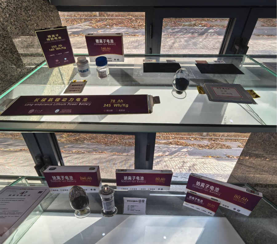 拼版照片:上图为南开大学新能源电池教师团队研发的锂离子电池及其核心材料;下图为南开大学新能源电池教师团队研发的钠离子电池及其核心材料 新华网记者 唐斓 摄