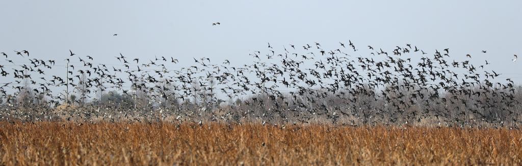 11月19日,湖北返湾湖国家湿地公园迎来大量越冬候鸟。新华社发(杨军 摄)