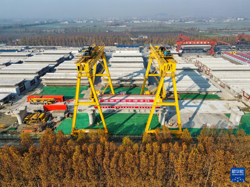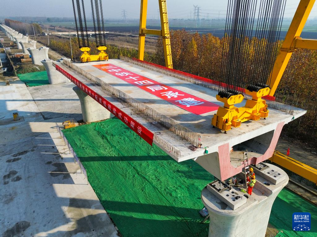 11月21日,国家重点项目潍(坊)宿(迁)高速铁路第九标段首榀箱梁架设成功,正式转入桥梁上部结构施工阶段,项目承建方抢抓工期与节点,稳步推进标段施工。