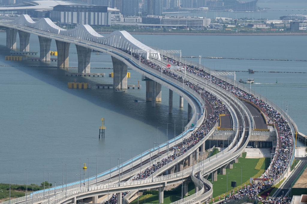 2024年9月29日,市民在澳门大桥上参与健步行。