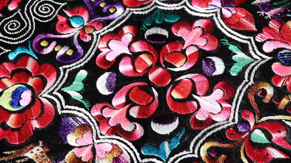 毕志辉8岁跟随奶奶学刺绣,掌握镂空绣、挑花等多种针法。他注重创新,采用祖传“植物土法染布”与定制绣线,作品兼具传统与灵动。年过五旬的他打造传习馆、外出授课,致力于将彝族撒尼刺绣这一国家级非遗技艺传承下去。