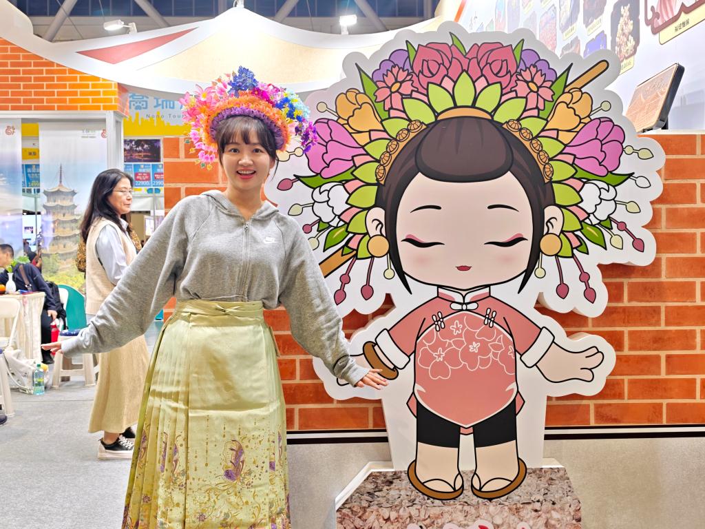 旅展现场,海旅会展区吸引了众多台湾民众驻足观看,不时询问大陆入境政策以及索取旅游线路手册。从白发老人到青年学生,不少人都对大陆旅行充满期待。还有民众参与展区的互动有奖竞答游戏、体验汉服簪花之美、亲手拓印漳州木版年画,现场氛围热闹。