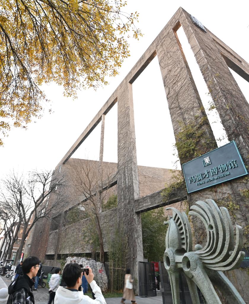 11月22日,观众在天津大学冯骥才博物馆门前拍照。新华社记者李然 摄