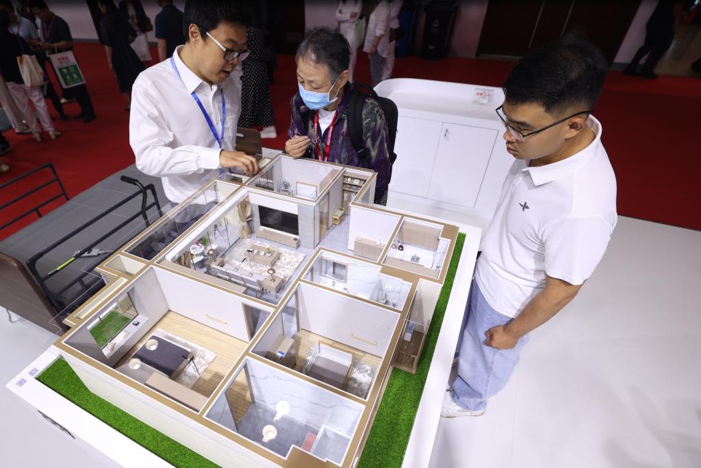 5月21日,工作人员在第十一届中国国际养老服务业博览会上介绍适老化改造方案。新华社发(陈晓根 摄)