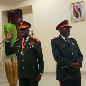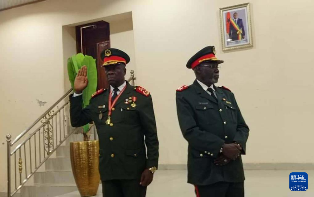 11月27日,几内亚比绍高级军官奥尔塔·因塔阿(左)在首都比绍出席就职仪式(手机照片)。新华社发