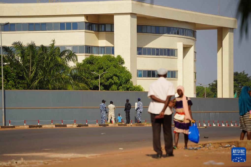 11月27日,军人在几内亚比绍首都比绍一处主干道路口值守。新华社记者 司源 摄