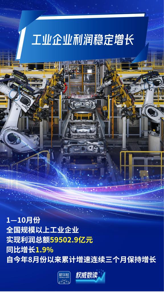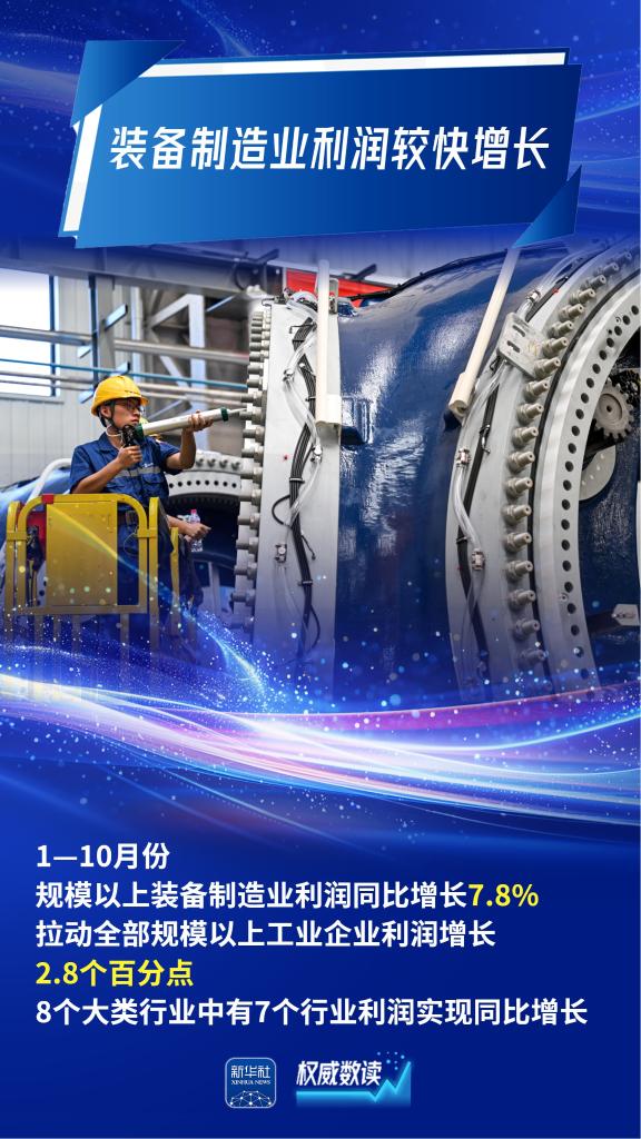 国家统计局27日发布数据显示,今年前10个月,我国工业企业利润稳定增长,装备制造业利润较快增长,高技术制造业效益增势良好,传统产业提质升级成效显现,工业经济高质量发展稳步推进。跟随海报,一起了解下吧。