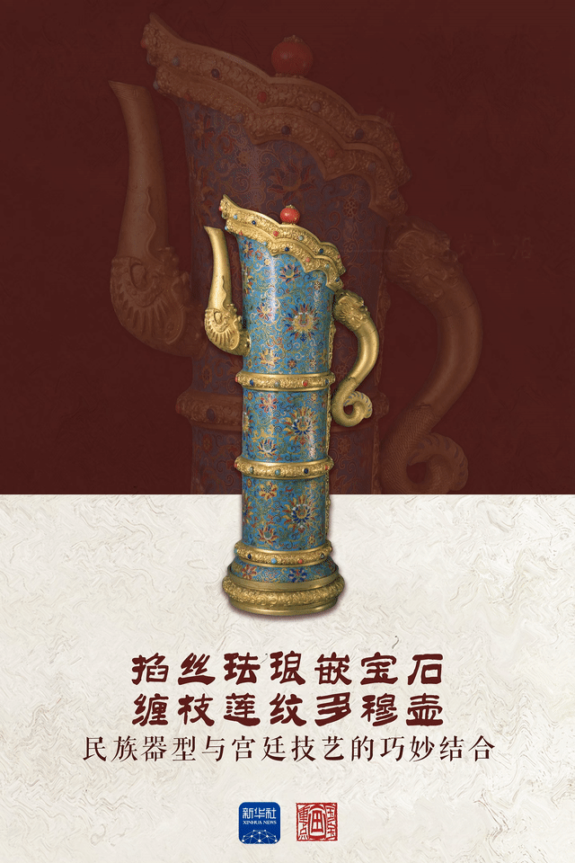 掐丝珐琅嵌宝石缠枝莲纹多穆壶