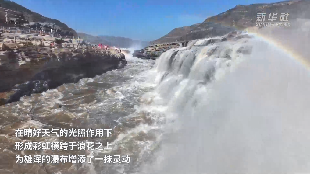 黄河壶口瀑布现“彩虹横卧”景观-新华网