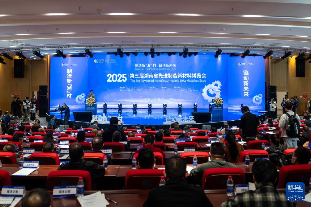 这是11月27日在娄底经开区电力科技谷拍摄的第三届湖南省先进制造新材料博览会开幕式现场。新华社记者 陈思汗 摄