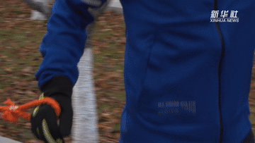 志愿者和盲友的手用一根橘色的绳子连接,这是彼此信任的纽带。“陪跑绳是最重要的跑步工具,一头是盲友的托付,一头连接着志愿者的守护,引领着盲友在跑道上尽情奔跑。”志愿者史尚宏说。