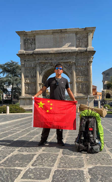 在意大利罗马的秋阳下,34岁的程龙背着磨损的行囊,静静站在古老的斗兽场前。两年前,他从万里之外的西安出发,沿着古老的丝绸之路,一步一步走到这里——用脚丈量了欧亚大陆,也丈量了梦想的重量。