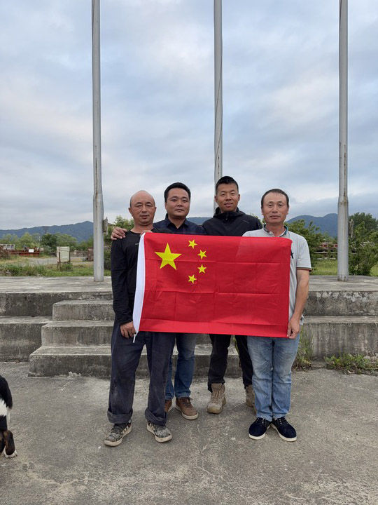 2025年5月31日,格鲁吉亚,程龙与偶遇的“一带一路”援建高速公路项目工人合影留念。(采访对象供图)