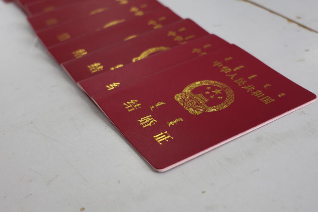 内蒙古金色阳光印务发展有限公司生产的结婚证。新华社发