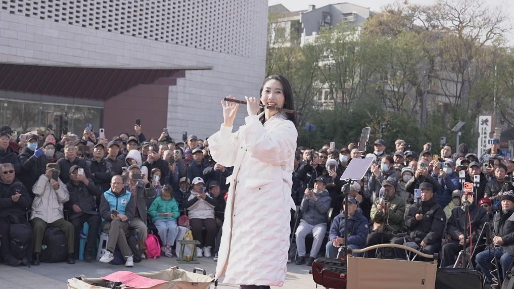 她是中国歌剧舞剧院民族乐团的演奏员,从金秋十月开始“民间”义演,很快就成了京城无数人追捧的“明星”,成为大爷大妈口中的“国民闺女”。