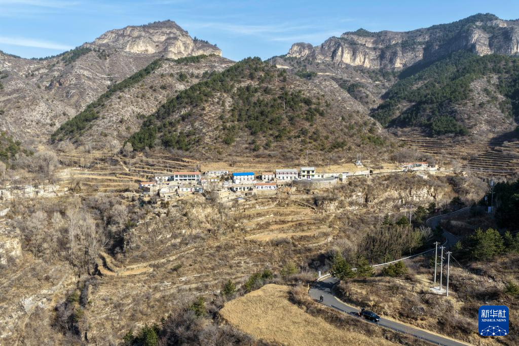冬日的山西省平顺县东寺头乡黄崖沟自然村一景(12月1日摄,无人机照片)。