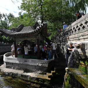 游客在晋祠排队观泉。新华社记者 詹彦 摄