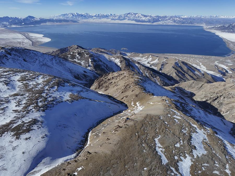 这是2025年11月29日拍摄的赛里木湖(无人机照片)。新华社记者 胡虎虎 摄