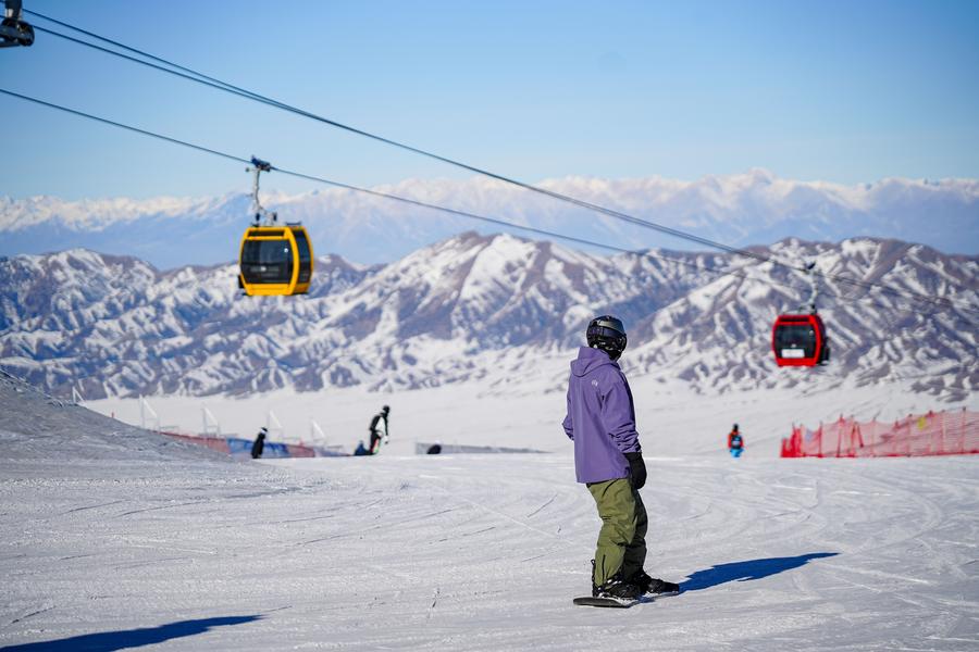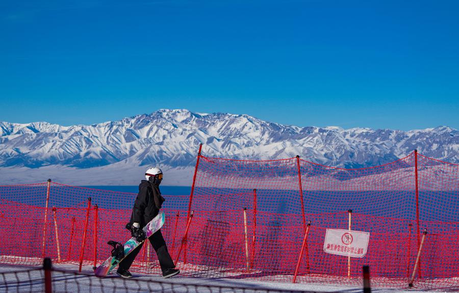雪友走进新疆赛里木湖滑雪场(2025年11月29日摄)。新华社记者 徐宏岩 摄
