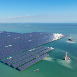 11月13日拍摄的位于山东东营市的国华HG14海上光伏项目(无人机照片)。新华社发(周广学摄)