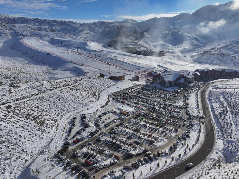 ↑12月1日拍摄的新疆阿勒泰将军山国际滑雪度假区。新华社发(明庭俊杰摄)