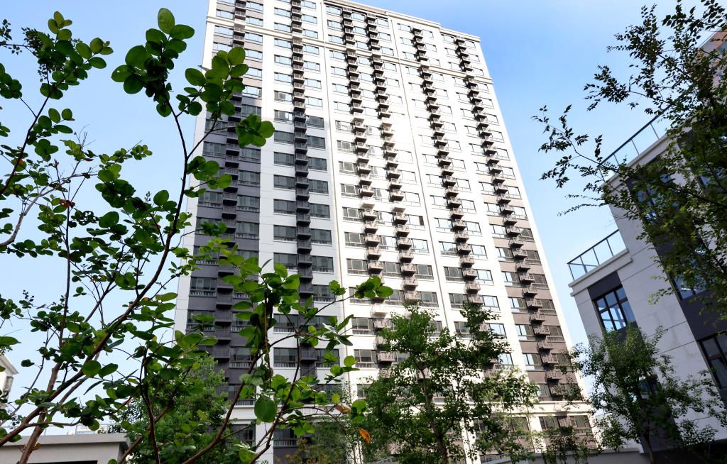 9月15日,上海市静安区谈家桥小区迎来首批回搬居民。这是当天拍摄的谈家桥小区高层住宅楼外景。新华社记者 方喆 摄
