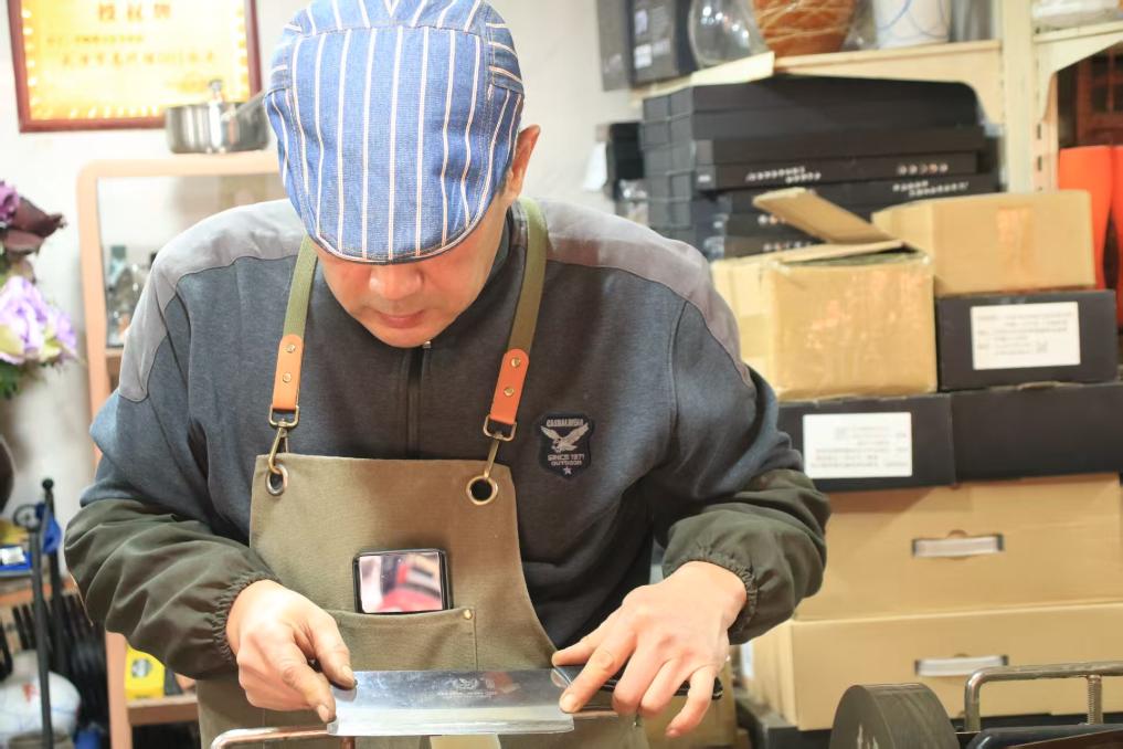 不久前,李波修磨了一把已经用了几十年的菜刀。刀口虽已变窄,却被主人擦得发亮。“一把厨房里的刀,往往承载着一个家庭几代人的生活。”李波说,电器会更新淘汰,刀却可以一直留着,“它见证过酸甜苦辣,留住的是日子,也是记忆”。