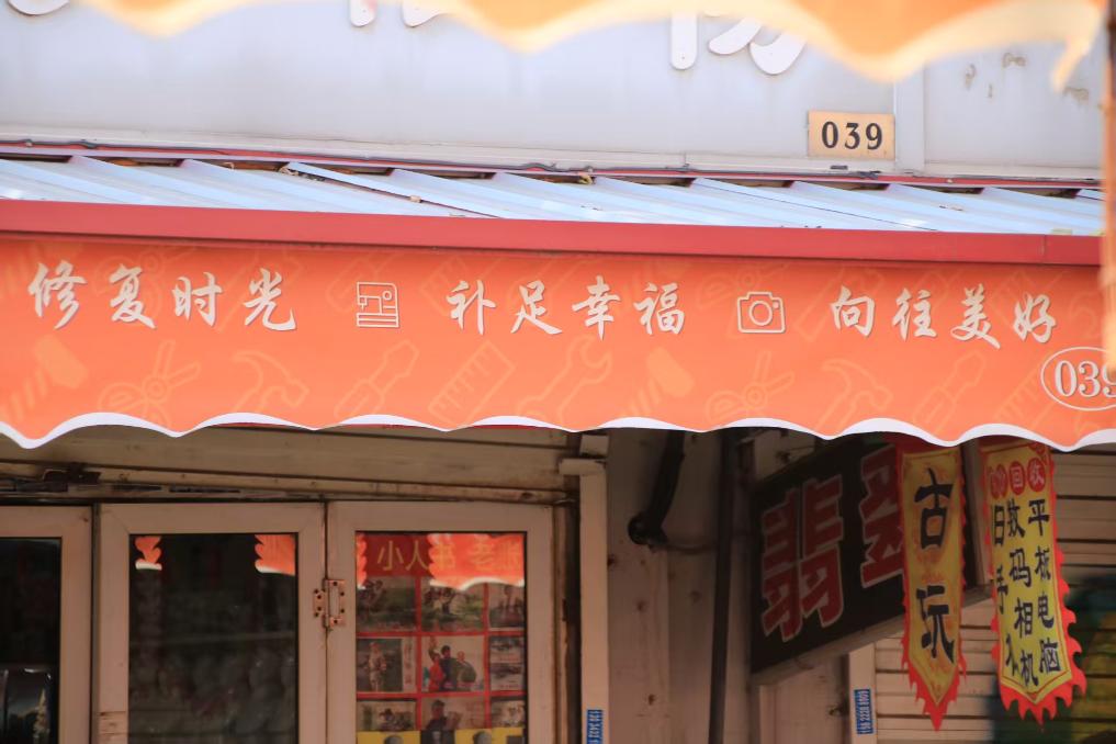 在不远处的“春元织补改衣店”,店主殷玥熟练地穿线、落针,一件搁置多年的呢子大衣正被一点点“唤醒”。殷玥说,真正考验功夫的,是得把那些破洞补得几乎看不出痕迹,“修补是很细致的事,任何一道工序都马虎不得”。
