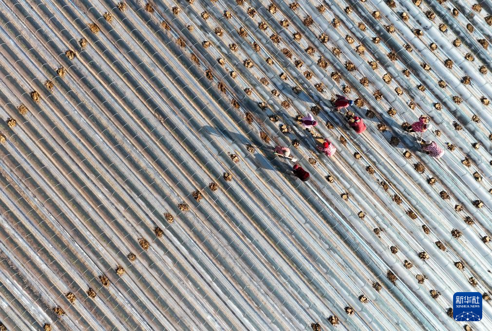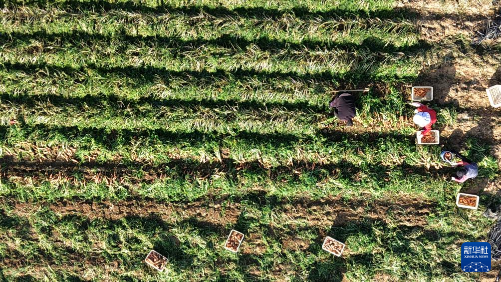 12月6日,河南省焦作市温县黄河街道东张王庄村农民在田间收获怀地黄。