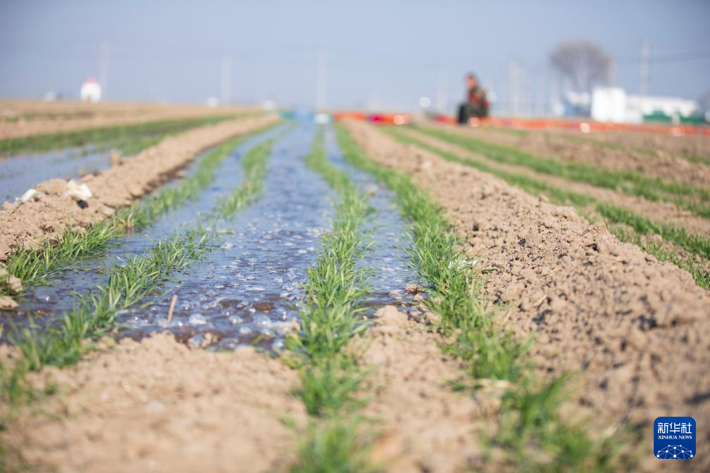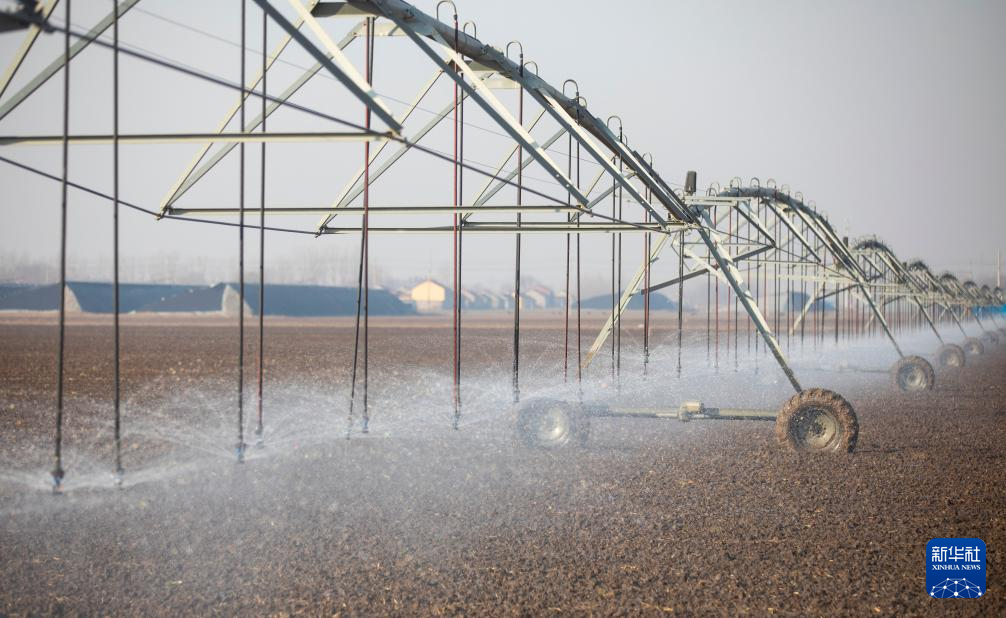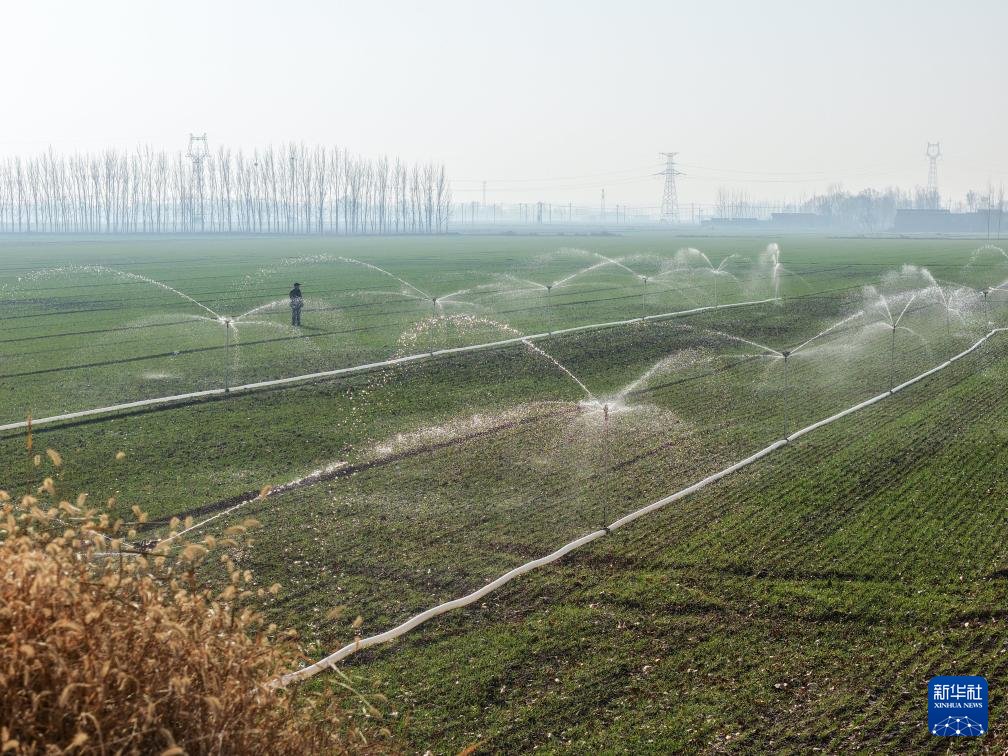 12月6日,在山东省东营市广饶县李鹊镇,农民浇灌冬小麦。