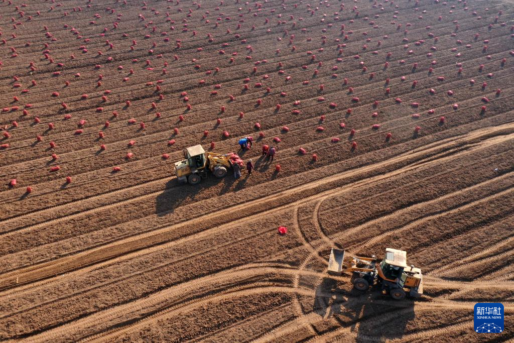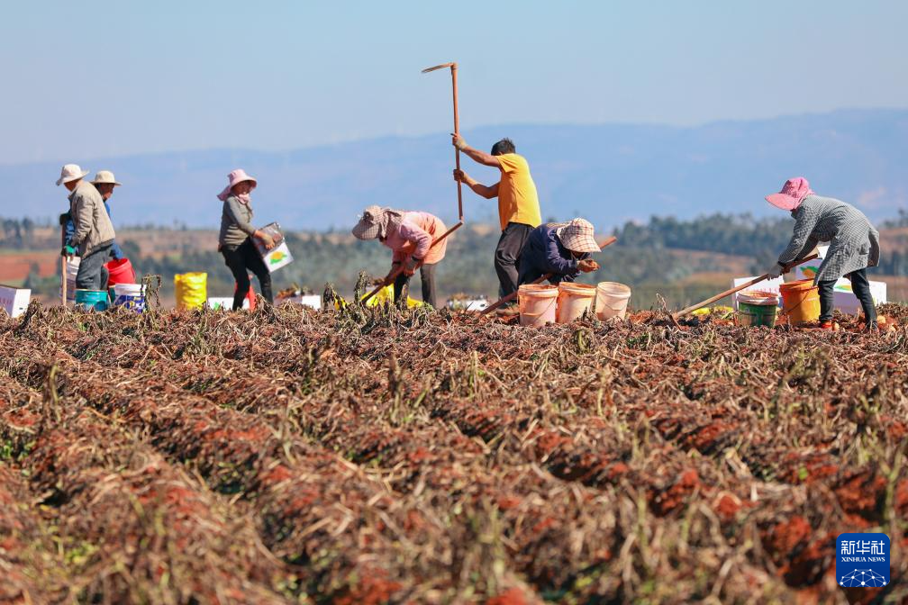 12月6日,农民在云南省曲靖市陆良县小百户镇中坝村羊头山收获秋马铃薯。
