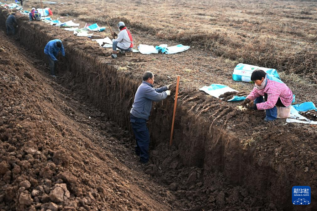 12月6日,河南省沁阳市王曲乡古章村,农民在田间采挖怀山药。