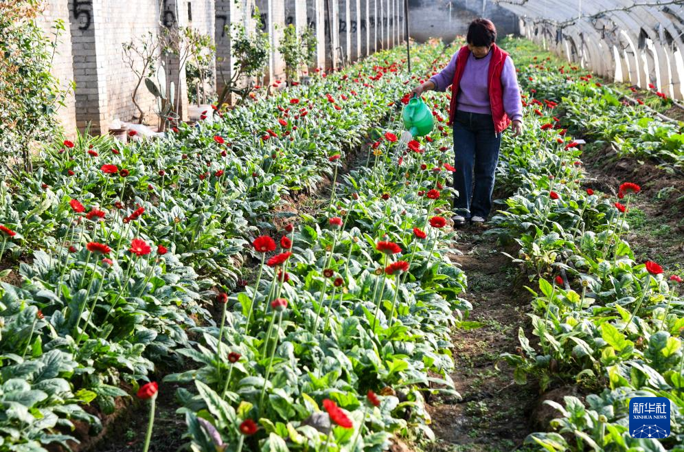 12月6日,河南省济源市思礼镇涧南庄村农民在温室大棚里管理非洲菊。