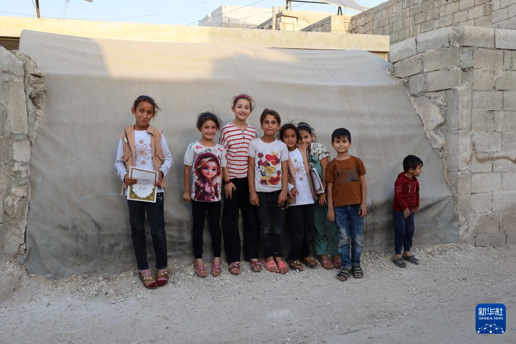 这是9月25日在叙利亚西北部伊德利卜省卡拉马难民营拍摄的当地儿童。新华社发